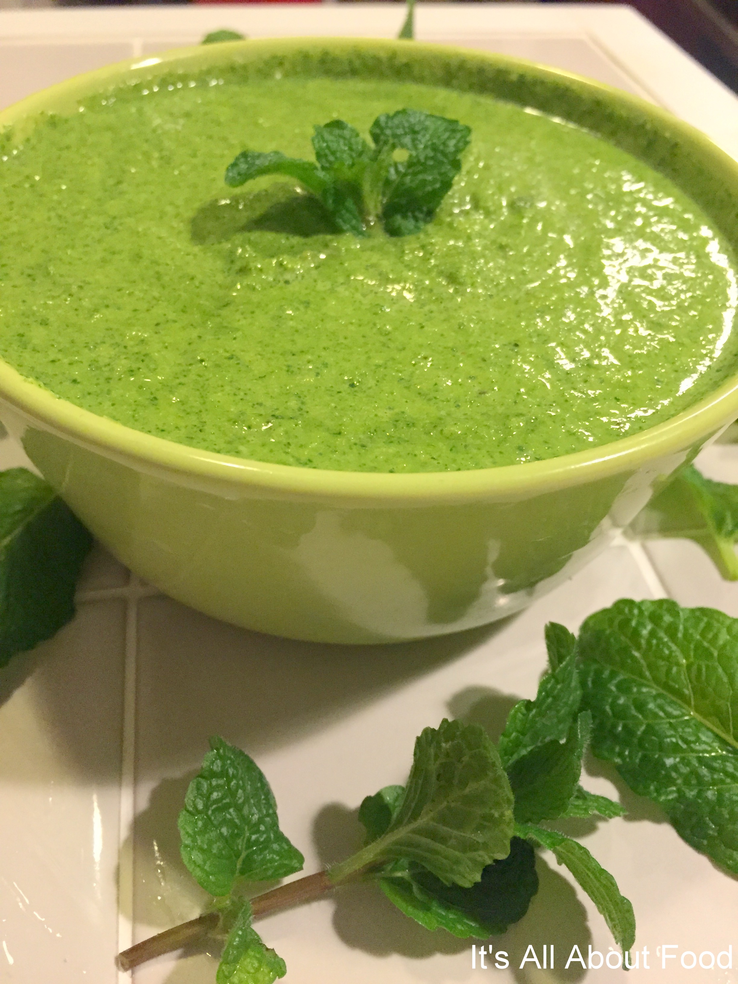 Nothing fancy, nothing different just the regular mint chutney goes well with lot of dishes. A must have in my refrigerator..