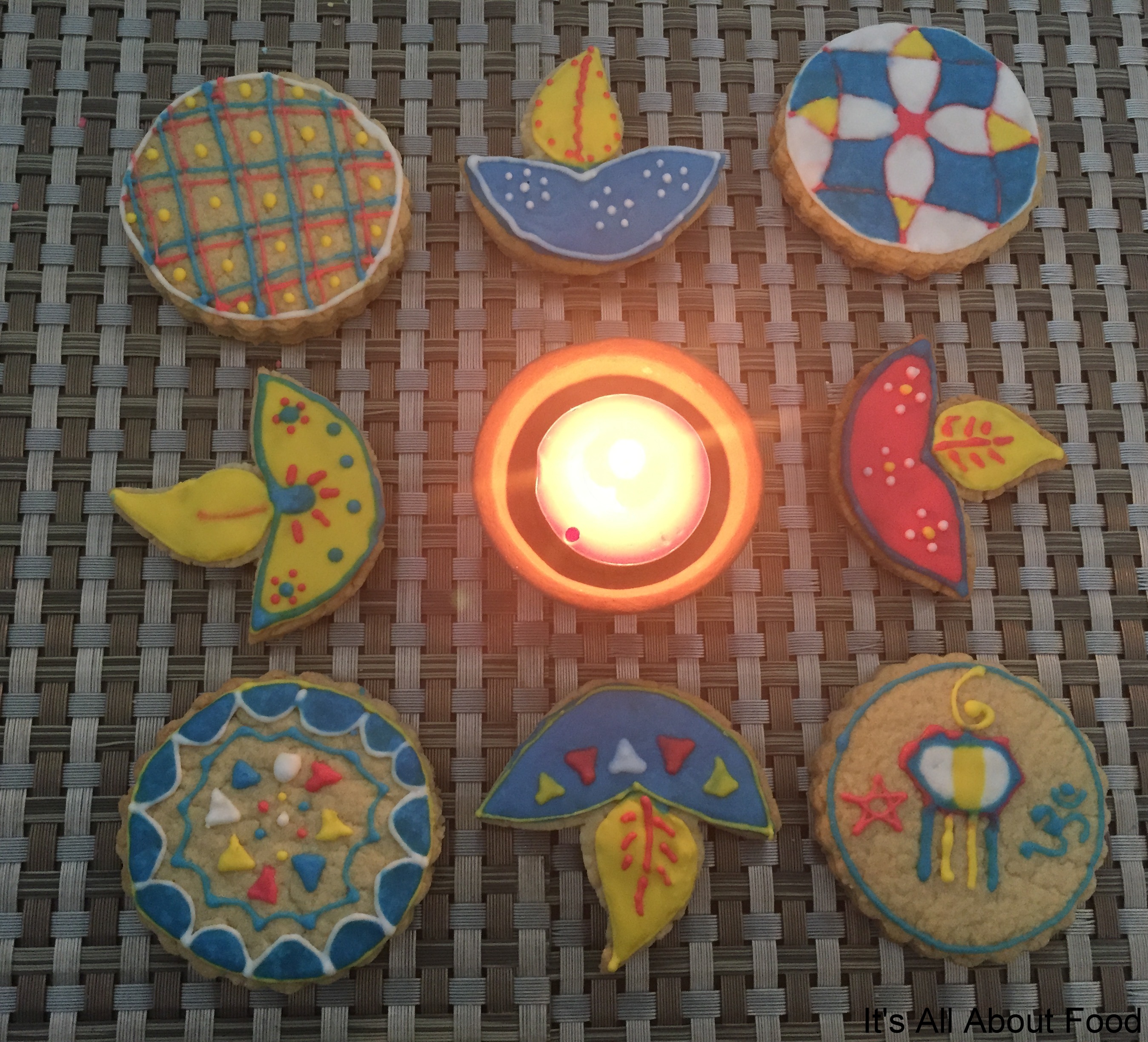 Simple Sugar Cookie recipe and loads of colours in spirit of the festival.. Hope you all like my way of celebrating Diwali.. I even prepared some cookie hampers for the guests.. Eat and Take Away the best way to host any party.. 🙂