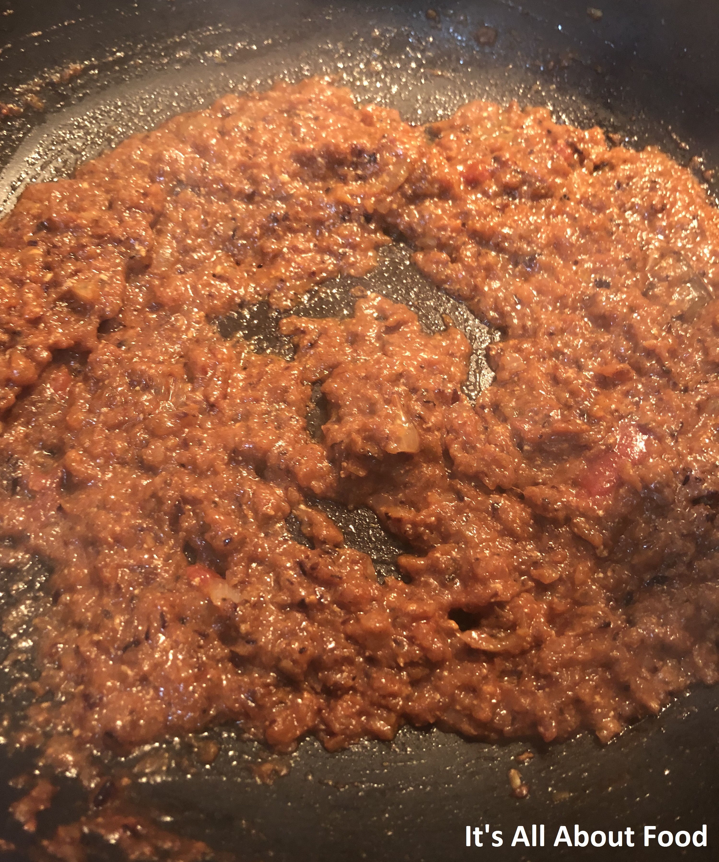 • Cook onions till they are brown, mixing in between. Once the onions are brown add channa masala if using and tomato puree and sauté it well. Then cover and cook till oil separates from the mixture.