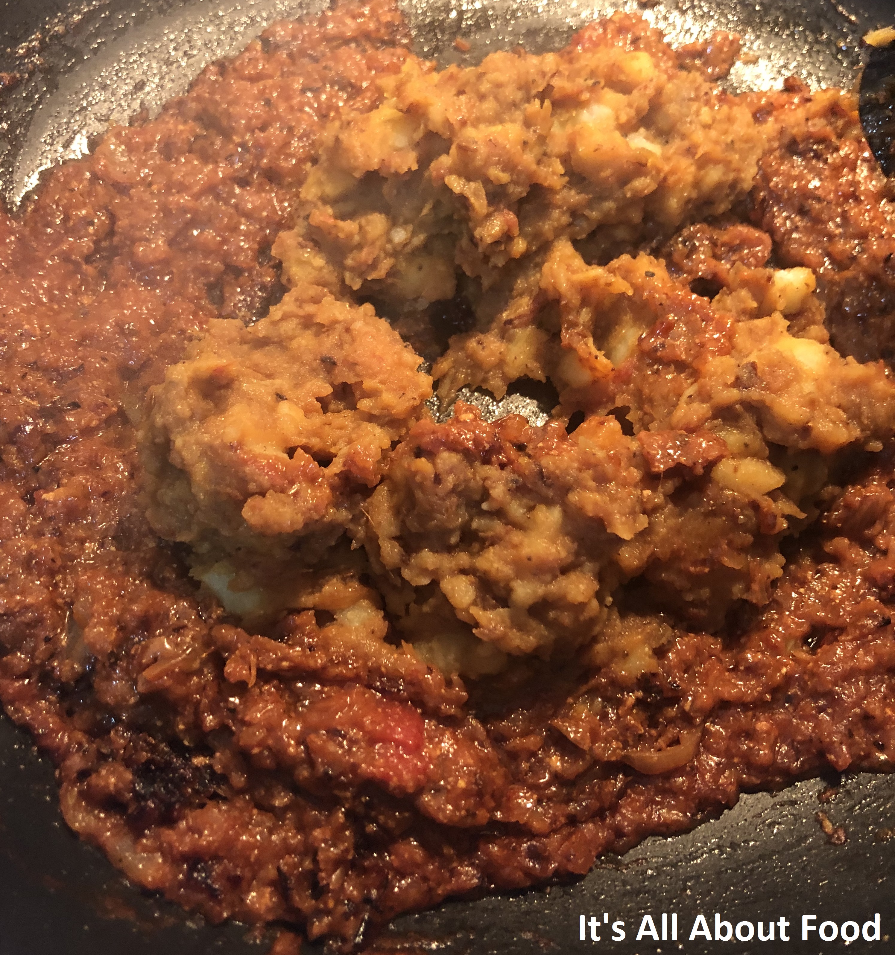 Sauté the masala till it’s dark in colour and the raw smell of ginger garlic disappears (refer to the picture) then add the channa masala to it (if using).