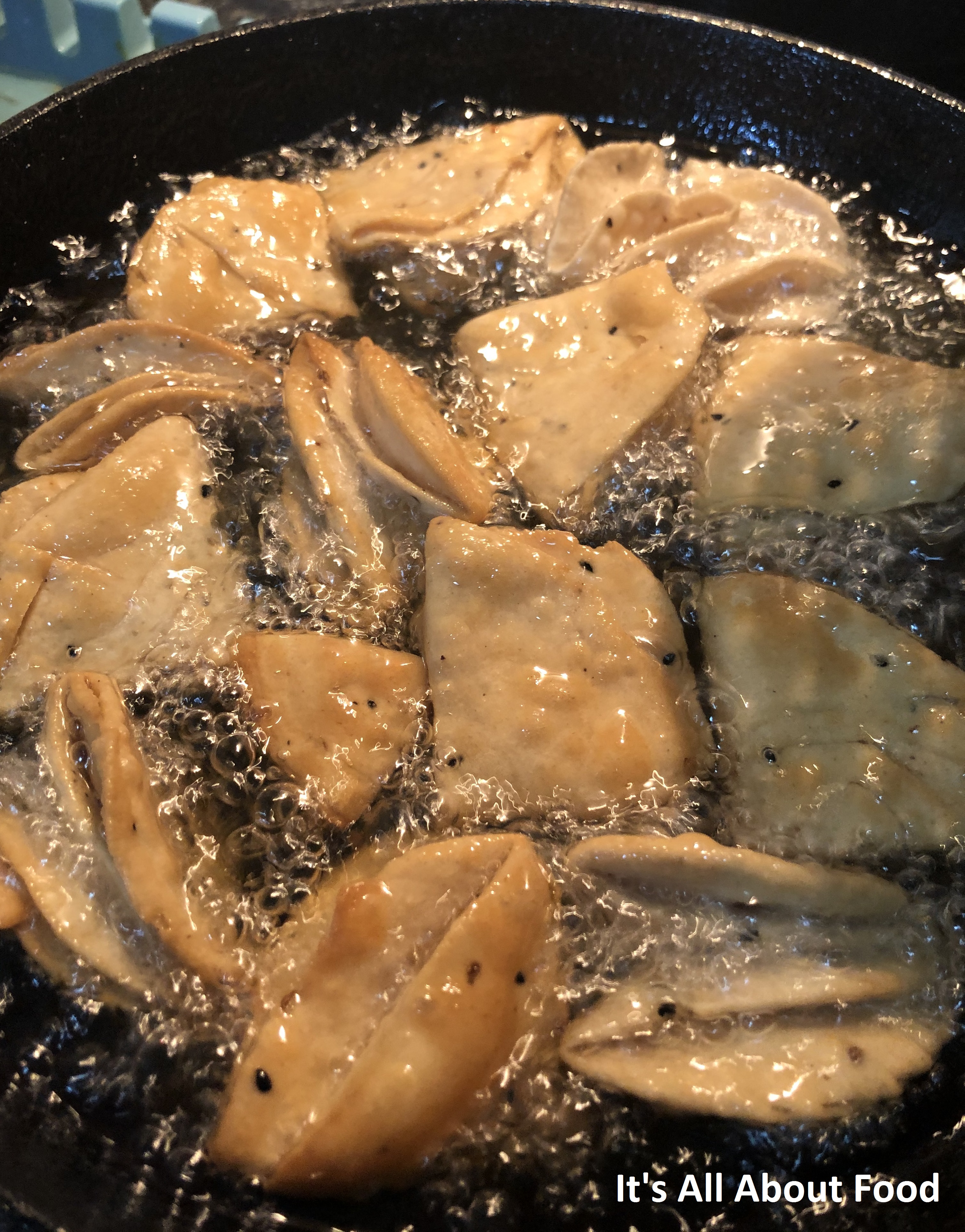Prepare these triangle’s from all the dough following the above mentioned steps. Then fry the triangle’s, make sure to fry them on medium flame for the mathri’s to cook evenly.