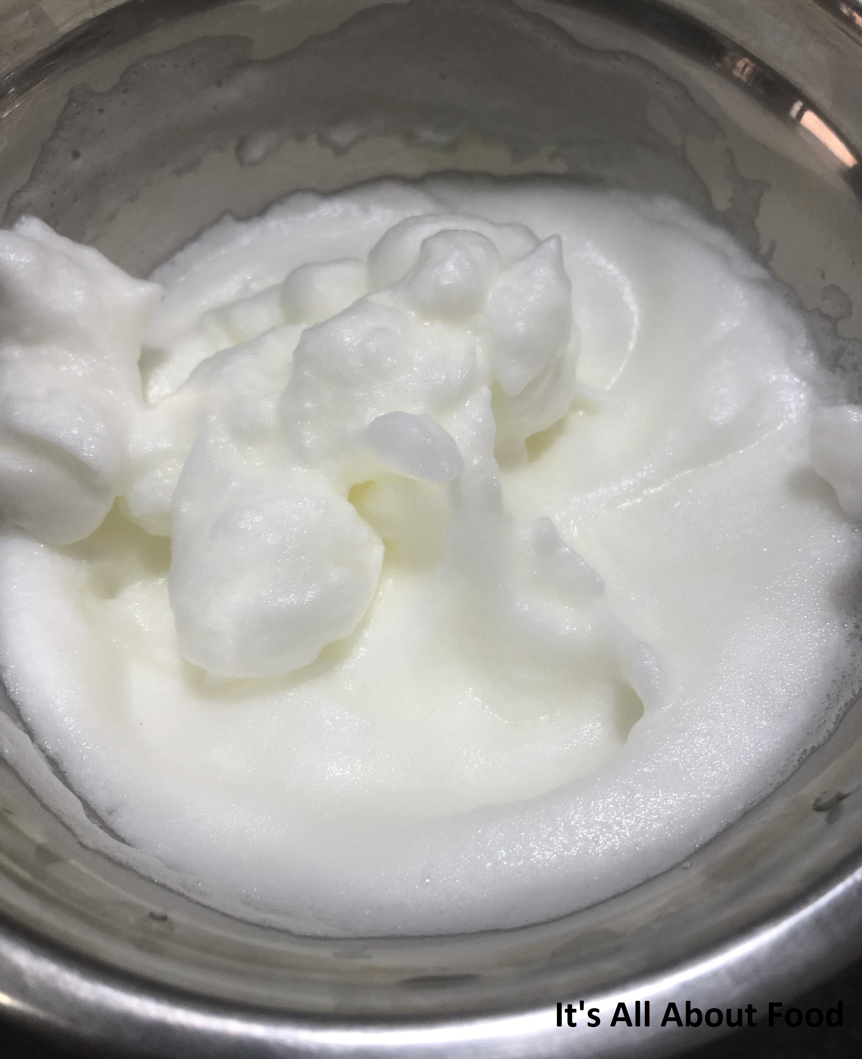 - Using an electric mixer, beat the eggs whites till stiff peaks are achieved. The best way to know if the eggs have been beaten to perfection is by turning the bowl upside down, if egg doesn’t fall out you have got the right consistency.